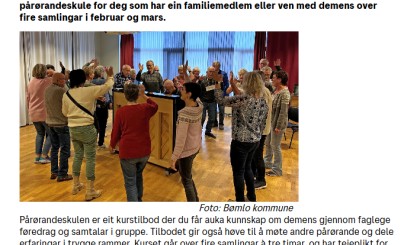 Bømlo kommune, i samarbeid med Bømlo demensforening, arrangerer pårørandeskule for deg som har ein familiemedlem eller ven med demens over fire...