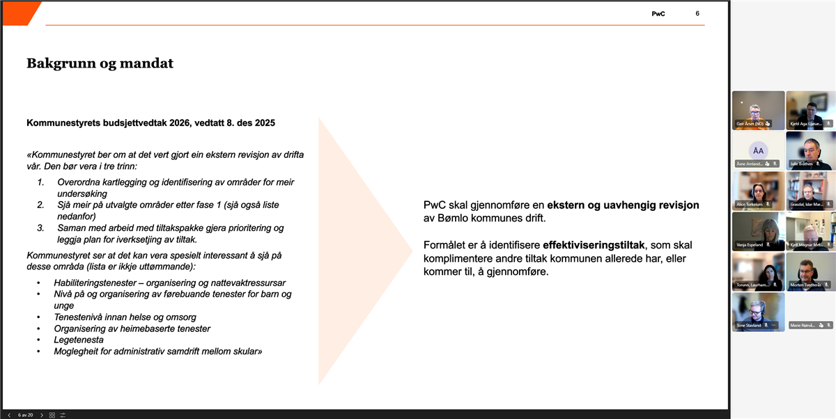 Oppstartsmøte med PwC om ekstern gjennomgang av kommunal drift.