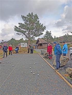 - Petanque er eit enkelt spel som ikkje krev noko forkunnskap. Me trekkjer nye lag frå gang til gang, så du blir kjend med mange etterkvart. Det er mykje lått og løye og god stemning, så folk stortrivst, fortel Sele.