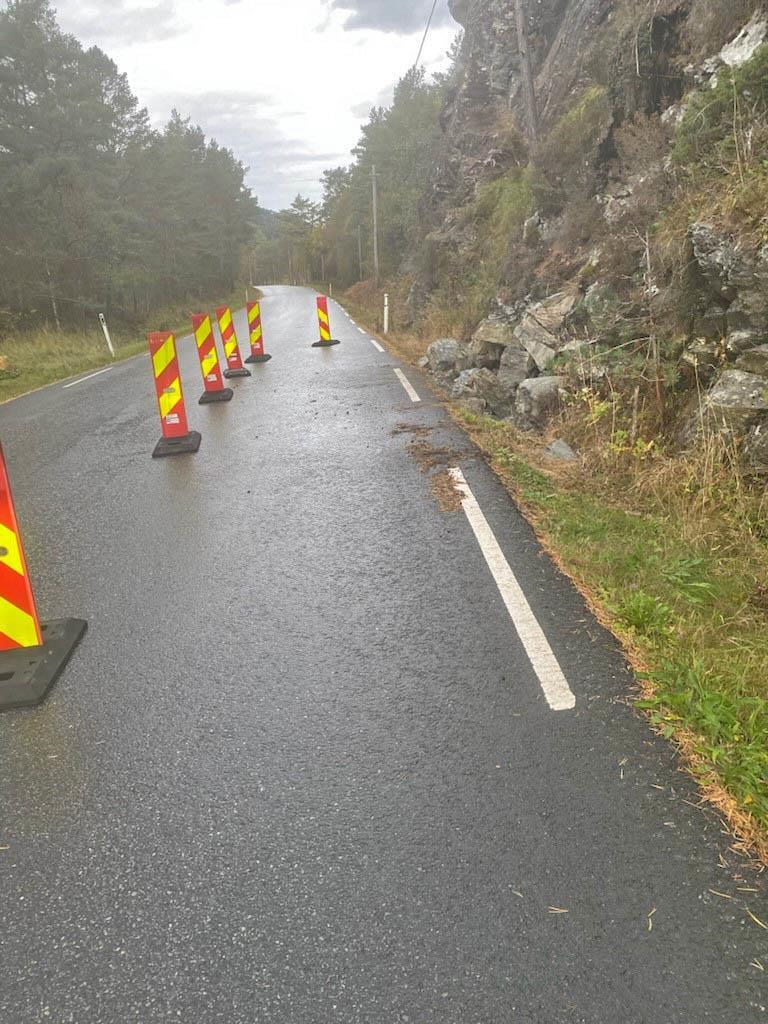 Del av Røyksundsvegen ved Håvik måtte sikrast etter AMY-stormen.