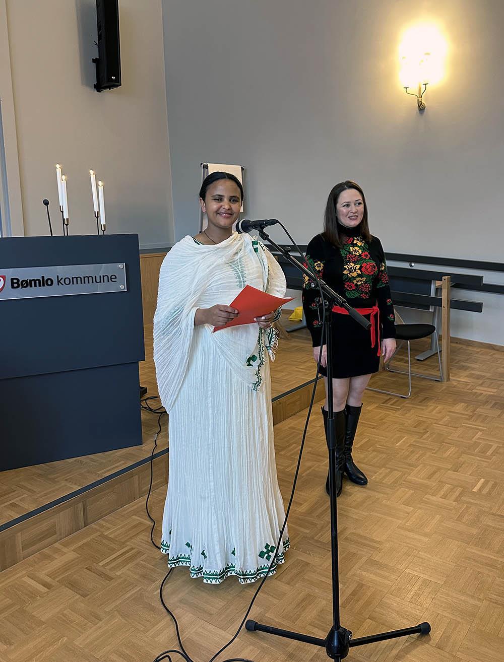 Festen vart flott leia av Nazreit frå Eritrea og Nataliia frå Ukraina. Dei gav ordet til ordføraren og etter hans helsing var det også godord frå kommunedirektør Kjetil Aga Gjøsæter og kommunalsjef for oppvekst, kultur og idrett Torunn Laurhammer. Tolkar var Yuliia Khilinska og Othman Edrees.