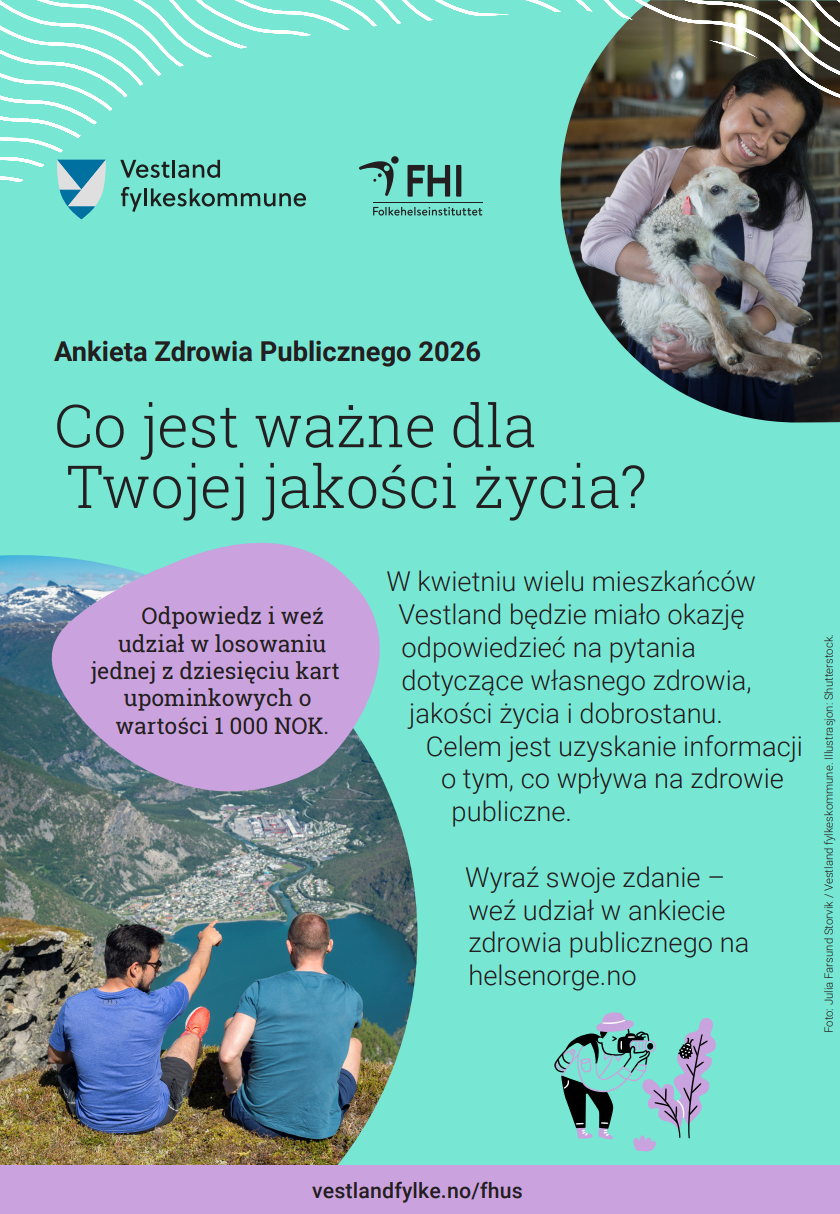 Målet er meir kunnskap om helse og livskvalitet blantvaksnei Vestland. Undersøkinga blir gjennomført av Vestland fylkeskommune i samarbeid med Folkehelseinstituttet (FHI) og kommunane i fylket.