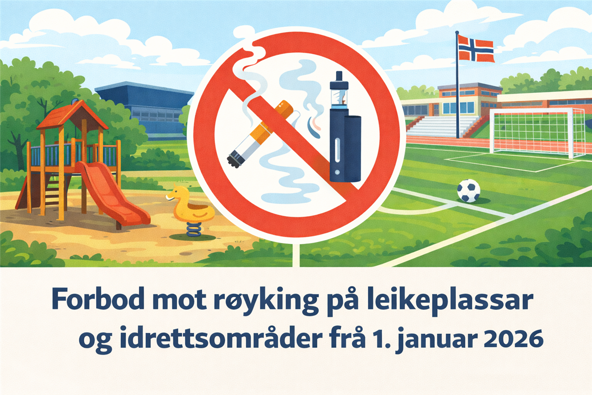Røykeforbod frå 1. januar 2026på ofentlege plassar utandørs.