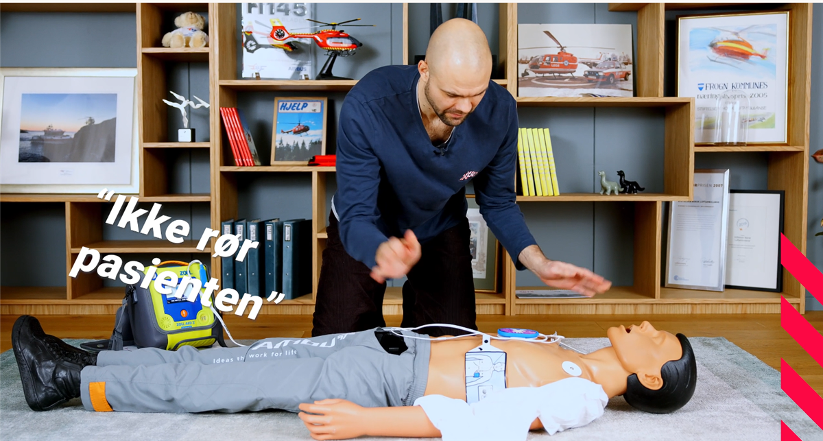 Norsk Luftambulanse har instruksjonsvideo om korleis bruka hjartestartar.