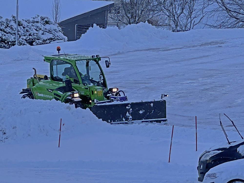 Teknisk drift ute med ein av sine mindre brøytetraktorar.