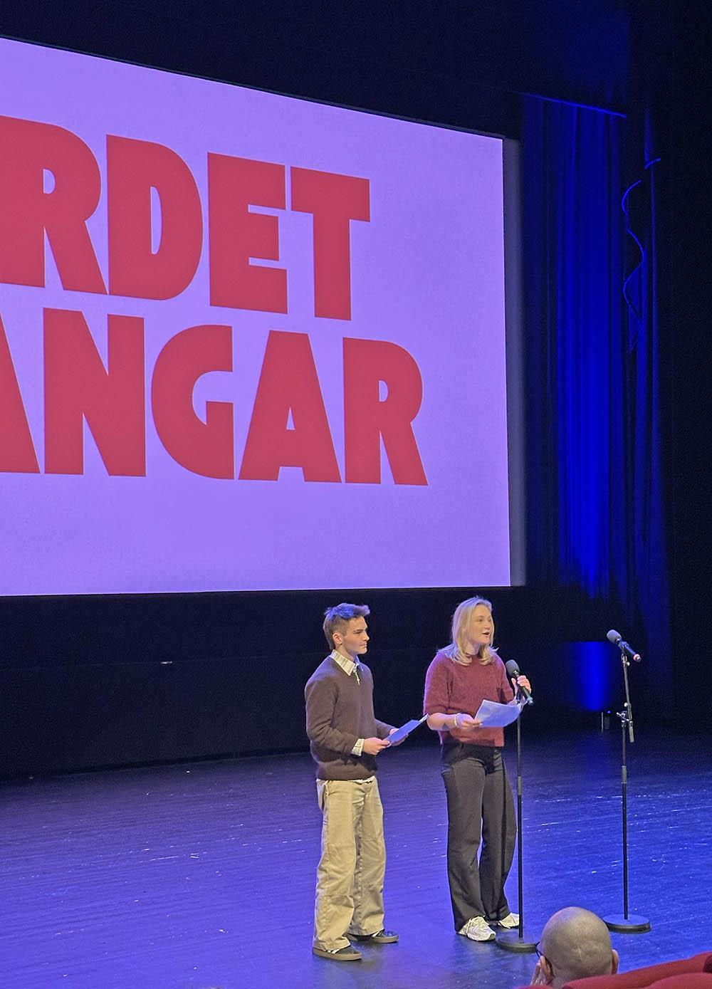 Nestleiar Trygve Tollaksvik og Maren Noremark i Bømlo ungdomsråd heldt appell om prosjektet "Ordet fangar".