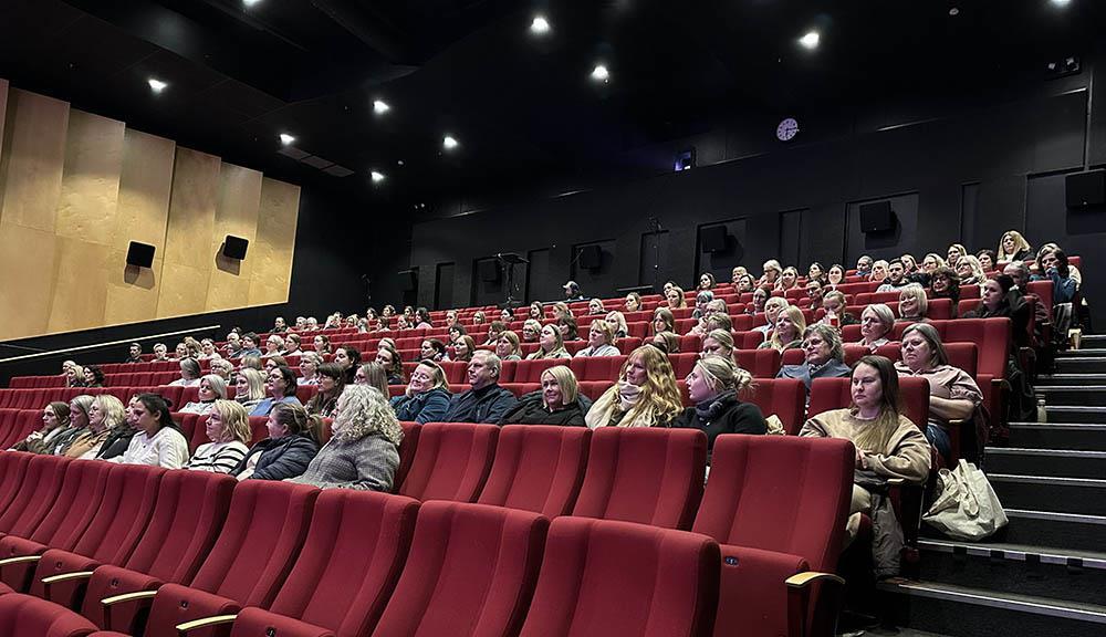 Mange barnehagetilsette blant publikum i Bømlo kulturhus under presentasjonen av "Ordet fangar".