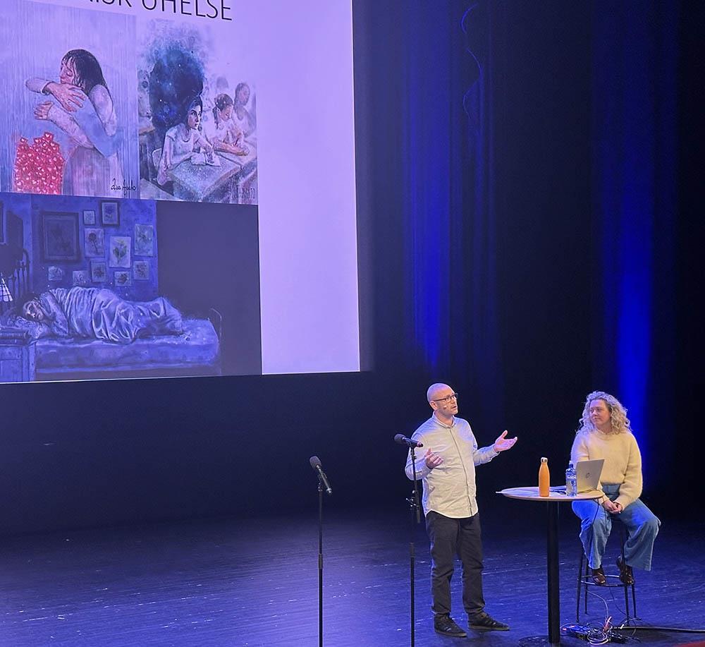 «Skjermtid og sjølvbilete – korleis nettet formar oss» var tema for kommunepsykolog Øivind Johnsen og kommuneoverlege Anne Marit Særsten Halvorsen sitt innlegg under samlinga om "Ordet fangar".