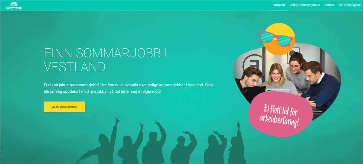 Sommarjobb i vest er ei nettside for å søkje sommarjobbar i Vestland sine kommunar.På sommarjobbivest.no finn du jobbar som passar for ungdom mellom 15 og 17 år. Nettstaden gir deg god oversikt over kva du kan søkje på, når du kan jobba, og korleis du sender inn søknaden. Tilbodet er ope for ungdom i heile Sunnhordland, og det er lett å koma i gang.