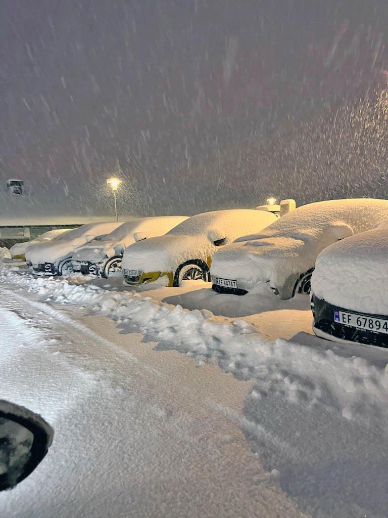 Dei vart likevel overraska over snømengda som kom. Det kom 30–50 centimeter snø i løpet av natta til laurdag, og det meste vart innesnødd. Einaste unntaket var bilane til nattevaktene då dei tilsette skulle ut i åttetida laurdag morgon, fortel avdelingsleiar i sone Aust, Inger Lise Agasøster.
