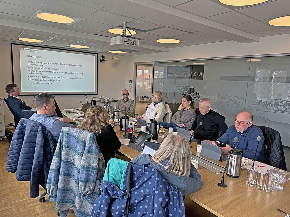 Administrasjonsutvalet er formannskapet utvida med hovudtillitsvalde og hovudverneombod. Etter møtet der dei fekk økonomisk statusrapport frå kommunedirektør Kjetil Aga Gjøsæter og løypemelding om den eksterne revisjonen av kommunal drift var det møte i formannskapet. SLT-koordinator John Henrik Staveland Sæter orienterte her om Rusmiddelpolitisk handlingsplan før ordinær saksbehandling tok til.