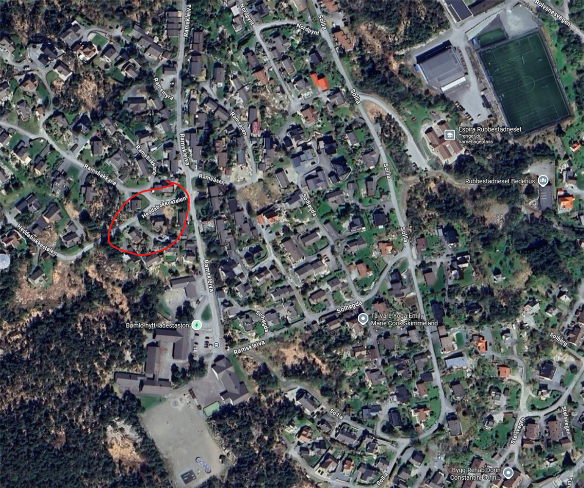 Arbeidsområde i Heddebakkestølane markert med raudt på kartet.