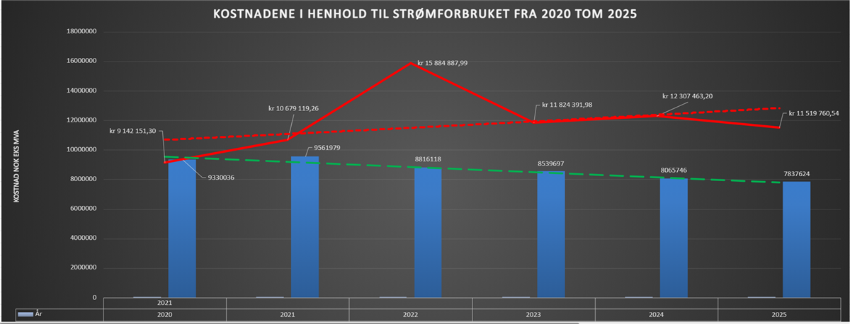 • I 2020 betalte kommunen om lag 9,1 millionar kroner i straumkostnader.