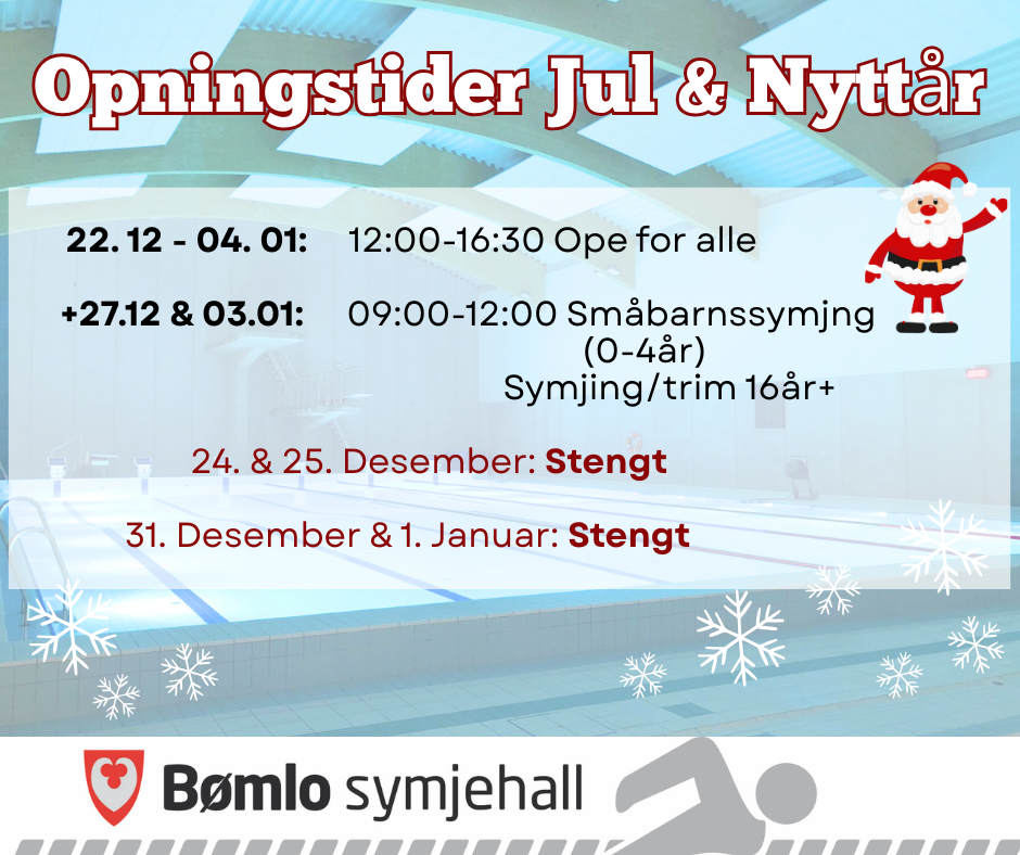 | Laurdag | 12.00-16.30 | 09.00-12.00 symjing/trim 16år+ | | | 09.00-12.00 Småbarnssymjing (0-4år) |